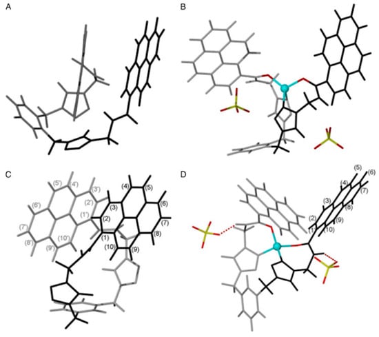 Fully optimized structures (DFT) in the gas phase of (A) compound 18a, (B) [Zn·18a](ClO4)2, (C) compound 18b, and (D) [Zn·18b](ClO4)2. Adapted From [163], with permissiom from Taylor & Francis Ltd.