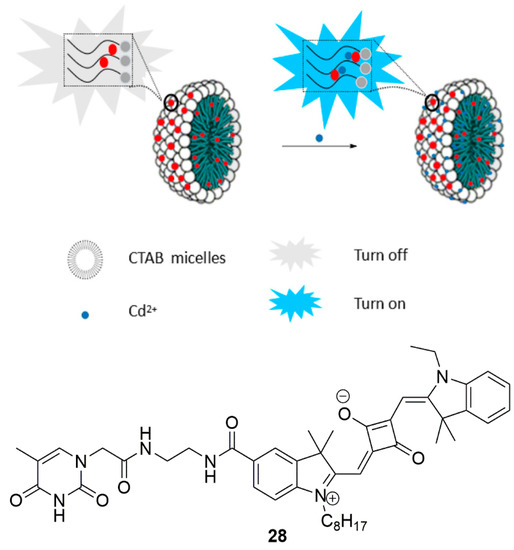 - Liu, X.; Li, N.; Xu, M.-M.; Jiang, C.; Wang, J.; Song, G.; Wang, Y. Turn on fluorescent detection for Cd2+ based on surfactant controlled squaraine aggregation. Spectrochim. Acta Part A 2019, 208, 236–242. [Google Scholar] [CrossRef]