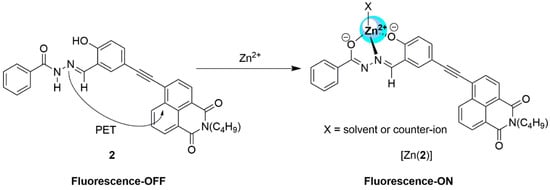 The proposed binding motif between compound 2 and Zn2+ ions. The binding environment was also confirmed by 1H NMR spectroscopy.