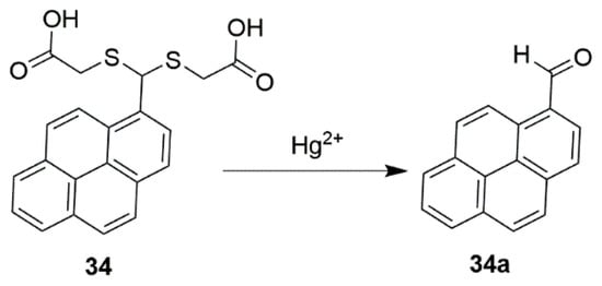 - Gao, Y.; Ma, T.; Ou, Z.; Cai, W.; Yang, G.; Li, Y.; Xu, M.; Li, Q. Highly sensitive and selective turn-on fluorescent chemosensors for Hg2+ based on thioacetal modified pyrene. Talanta 2018, 178, 663–669. [Google Scholar] [CrossRef]