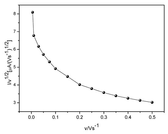 As can be seen, the current versus velocity function graph led to a typical expected profile for EC systems in which the current function at low scan rate presents high values.