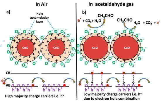 - Patil, P.; Nakate, U.T.; Nakate, Y.T.; Ambare, R.C. Acetaldehyde sensing properties using ultrafine CuO nanoparticles. Mater. Sci. Semicond. Proc. 2019, 101, 76–81. [Google Scholar] [CrossRef]