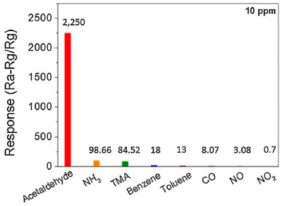 - Shimizu, Y.; Yamaguchi, K.; Fukunaga, K.; Takao, Y.; Hyodo, T.; Egashira, M. Acetaldehyde gas-sensing properties and surface chemistry of SnO2-based sensor materials. J. Electrochem. Soc. 1999, 146, 1222–1226. [Google Scholar] [CrossRef]