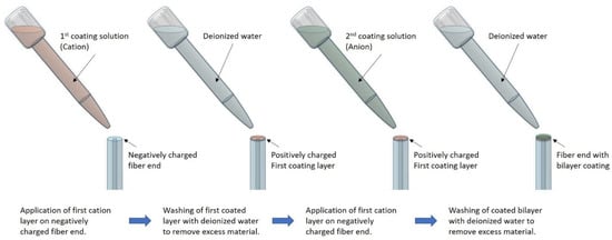 Example of layer by layer process for coating an optical fiber end by drop casting.