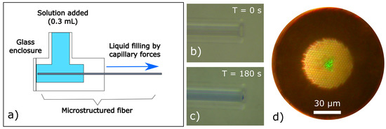 - Nielsen, K.; Noordegraaf, D.; Sørensen, T.; Bjarklev, A.; Hansen, T.P. Selective filling of photonic crystal fibres. J. Opt. A Pure Appl. Opt. 2005, 7, L13–L20. [Google Scholar] [CrossRef]