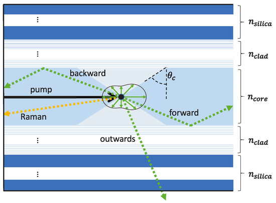 - Mak, J.S.W.; Farah, A.A.; Chen, F.; Helmy, A.S. Photonic crystal fiber for efficient Raman scattering of CdTe quantum dots in aqueous solution. ACS Nano 2011, 5, 3823–3830. [Google Scholar] [CrossRef]