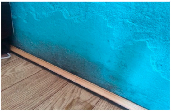 Rainwater can also be a problem in the event of roofing leaks or sewerage system leaks, which can quickly lead to mold problems if not repaired properly and carefully. In some cases, an undiscovered roof leakage may cause issues, i.e., the growth of mold on generally accessible surfaces, e.g., walls and ceilings, and in places generally difficult to reach, e.g., on the wall behind the wallpaper or under the floor covering. Areas of moisture may also occur in the spaces between the wall and furniture [4,55,56].