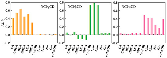 On the other hand, NC0γCD responded only to bile acid derivatives with large increases in fluorescence intensity (Figure 3).