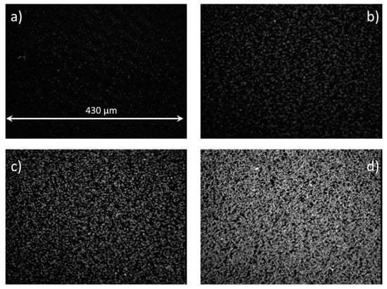 BAM images of TbPc2(OC11H21)8 recorded at different surface pressure values, 4 mN·m−1 (box a), 7.5, 18 and 29 mN·m−1 (boxes b–d). Width of images is 430 μm.