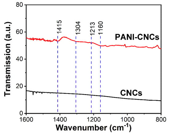 ATR-IR spectra for the bare CNCs and the 3-PANI-CNCs.