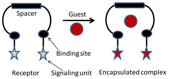 Anions are ubiquitous in nature and play an important role in biology, medicine, catalysis, agriculture and in many other industries [1,2,3,4]. Halides and oxoanions are essential in many biological processes that are key components in life to properly function for growth, reproduction and genetic signaling [5]. Many anions are associated with developing personal care products, pharmaceuticals, fertilizers and constructions materials, fire extinguishers, etc. [6]. However, when the concentration of anions becomes higher than the normal permissible range, they may adversely affect both biological systems as well as the environment. For example, an elevated amount of fluoride in drinking water causes dental and skeletal fluorosis [7] and is responsible for a bone cancer known as osteosarcoma [8]. The presence of an excess phosphate in the environment leads to eutrophication [9,10] of natural water bodies deteriorating normal aquatic life. A high level of phosphate in the human body increases the risk of hyperparathyroidism [5], soft tissue calcification, cardiovascular complications [11] and crystal deposition disease [12]. Therefore, the detection and binding of the key inorganic anions in vitro or in vivo is much anticipated. The remediation of an excess anion is very important for maintaining a healthy balance between the biological and environmental systems, leading to an upsurge in attention in synthesizing efficient artificial anion sensors [13,14] in supramolecular chemistry in recent decades [15,16,17,18,19,20]. However, the strategic design and synthesis of functional anion receptors showing measurable physico-chemical change upon the reaction with anions to produce signal still remain a major challenge. Several factors, including a larger size of anions compared to their isoelectronic cations, diverse geometries (halides: spherical; carbonate, nitrate, acetate: trigonal planar; phosphate, sulfate: tetrahedral) and pH sensitivity [21,22], restrict their interactions with the target receptors. Furthermore, the lesser charge-to-size ratio of anions as compared to their cationic counterparts inhibits their ability for electrostatic interactions with synthetic receptors. The high solvation energies are an added impediment in efficient sensing, making it difficult for the receptors to overcome the solvation barrier created by the solvent used. Polar solvents, such as water, also tend to compete with anionic analytes for binding with receptors.