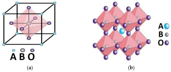 Perovskite oxides were discovered by Gustav Rose in the Ural mountains in 1839; the most common formula of perovskites is ABO3, with A being an alkali metal or a lanthanide, B being a transition metal, and O being the oxygen ion. The charges of A and B ions should be equivalent to the whole charge of the oxygen ions. The tolerance factor should be in the range of 0.8–1.0 with the radii of A and B ions greater than 0.090 nm and 0.051 nm, respectively. The cubic structure of the perovskite is stabilized by the 6-fold coordination of the B cation and the 12-fold coordination of the A cation (Figure 1).