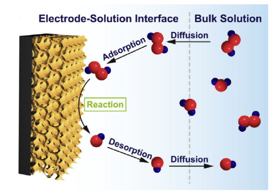 Figure 2 illustrates the overall steps of the H2O2 electro-oxidation on the perovskite surface, which involves diffusion, adsorption/desorption, and electro-oxidation reaction.
