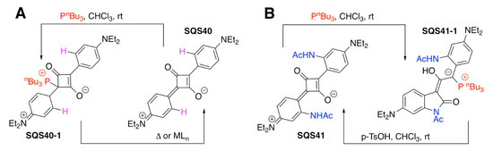 - Bacher, E.P.; Lepore, A.J.; Pena-Romero, D.; Smith, D.B.; Ashfeld, B. Nucleophilic addition of phosphorus (III) derivatives to squaraines: Colorimetric detection of transition metal-mediated or thermal reversion. Chem. Commun. 2019, 55, 3286–3289. [Google Scholar] [CrossRef] [PubMed]