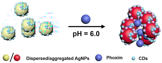 - Zheng, M.; Wang, C.; Wang, Y.; Wei, W.; Ma, S.; Sun, X.; He, J. Green synthesis of carbon dots functionalized silver nanoparticles for the colorimetric detection of phoxim. Talanta 2018, 185, 309–315. [Google Scholar] [CrossRef]