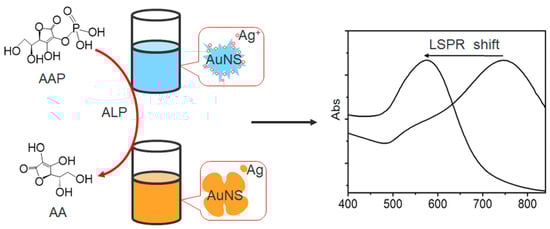 - Guo, Y.; Wu, J.; Li, J.; Ju, H. A plasmonic colorimetric strategy for biosensing through enzyme guided growth of silver nanoparticles on gold nanostars. Biosens. Bioelectron. 2015, 78, 267–273. [Google Scholar] [CrossRef]