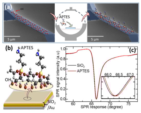 - Liang, Y.; Huang, J.; Zang, P.; Kim, J.; Hu, W. Molecular layer deposition of APTES on silicon nanowire biosensors: Surface characterization, stability and pH response. Appl. Surf. Sci. 2014, 322, 202–208. [Google Scholar] [CrossRef]