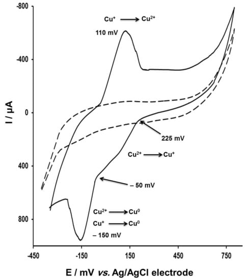 - Dong, S.; Xie, Y.; Cheng, G. Cyclic voltammetric and spectroelectrochemical studies of copper in alkaline solution. Electrochim. Acta 1992, 37, 17–22. [Google Scholar] [CrossRef]