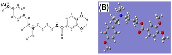 Mebeverine hydrochloride (MEB) (Scheme 1) is used in the treatment of various medicinal abdominal troubles. MEB is an effective musculotropic antispasmodic, which is used as a medicine for spasms associated with gastrointestinal disorders, such as irritable bowel syndrome and gastrointestinal spasm secondary [19,20]. MEB relieves spasms without affecting gut motility due to its action not interfering with the autonomic nervous system. The ideal dose of MEB is to be taken in the range of 135–270 mg, and this is to avoid serious health complications in the form of cardiovascular and neurological symptoms. After oral administration, MEB is rapidly and completely metabolized to mebeverine alcohol and veratric acid. Moreover, as a result of MEB hydrolysis and desmethylation steps, mebeverine acid and desmethylmebeverine acid are the major metabolites of MEB found in real human samples [20,21].