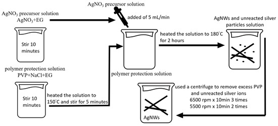 Schematic diagram of the manufacturing route of AgNWs prepared by polyol method.