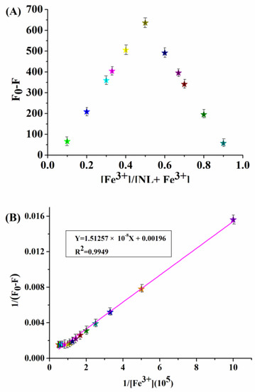 The association constant of NL-Fe3+ was calculated using the Benesi–Hildebrand (B–H) plot (Equation (1)) [24].