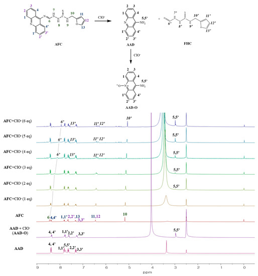 1H NMR titration of AFC with ClO− (DMSO-d6).