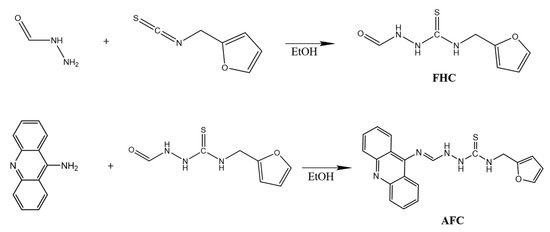 2.3. Synthesis of AFC ((E)-2-((Acridin-9-Ylimino)Methyl)-N-(Furan-2-Ylmethyl)Hydrazine-1-Carbothioamide)