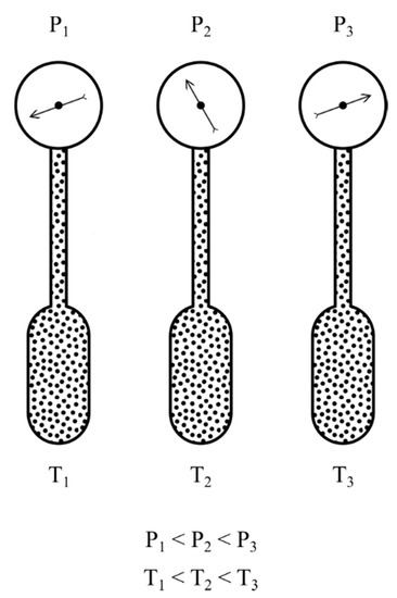 In a gas thermometer (Figure 2), a known amount of an inert gas (e.g., nitrogen or helium) is placed in a sealed bulb to which a pressure gauge is attached via a small-diameter capillary tube where [1].