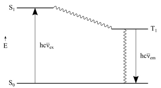 A typical organic chromophore has a singlet electronic ground state S0 with all electron spins paired, singlet lowest energy excited state S1 also with all electron spins paired, and a lowest energy triplet excited state T1 with two unpaired electron spins [20]. If these organic molecules are soluble in water and/or other solvents, they are called dyes. If the molecules are not water or solvent soluble, they are called pigments. Dye/pigment molecules absorb and are excited by selected wavelengths of near-UV, visible, and near-IR light giving their characteristic brilliant colors. Many but by no means all of these dye–pigment molecules also emit light in the visible and near-IR. Luminescent dyes and pigments tend to have more rigid structures that inhibit the non-radiative dissipation of energy of the excited molecule via molecular vibrations. Excited state energy deposited in the molecule by the excitation light is dissipated radiatively via a visible or near-IR photon. In contrast, non-emitting molecules tend to be more fluxional allowing non-radiative dissipation of the excited state energy to occur via molecular vibrations in the mid-to-far infrared. Increasing temperature favors non-radiative energy dissipation pathways. Luminescence intensity is diminished, and luminescence lifetime and quantum yield are also diminished. In this case, luminescence is said to be partially quenched. A totally quenched dye/pigment is non-luminescent. Luminescence from a typical dye/pigment is induced by excitation light and partially or completely quenched by triplet oxygen as shown in the Jablonski diagram in Figure 13 [24].