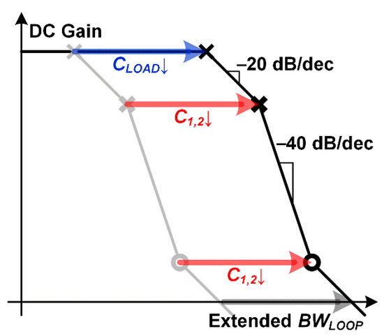 The basic configuration of the boost converter to be implemented in this study was designed to be in voltage mode, not current mode. This is because the current sensing circuit for realizing the current mode consumes relatively high power [8], so there is a risk of greatly reducing the efficiency of the boost converter. However, a voltage-mode-based boost converter has too narrow a loop bandwidth, so it is difficult to guarantee the fast recovery speed. In the case of the SiPM, after one radiation event occurs, it should be possible to recover the basic driving voltage of the SiPM before a new event to be input occurs. Therefore, the boost converter of voltage mode for SiPM needs to compensate for the disadvantage of not implementing current mode.