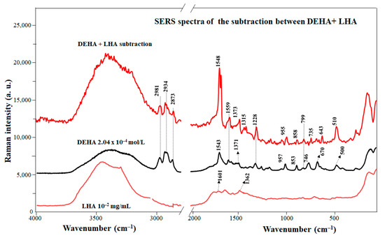 SERS spectrum of the DEHA/LHA complex and non-complexed DEHA.