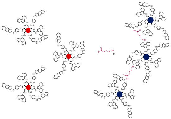Taking all this into account and the expertise of our group in the development of chemosensors based on functionalized AuNPs [16,17], here we report a selective and efficient method to detect GHB in beverages. The sensing protocol is based on the use of AuNPs doubly functionalized with two different ligands to recognize the functional groups present in GHB: a carboxylate and an alcohol group. The recognition units chosen were a 2-aminonaphthoxazole moiety that is capable of interacting with the carboxylate groups [18] and a phenanthroline group to interact with the hydroxyl group of GHB [19,20]. We expected that GHB would trigger the aggregation of the gold nanoparticles through a double recognition process. The recognition paradigm is shown in Scheme 1.