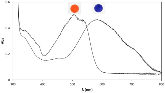 With the growing use of HPP, there is a need for an inexpensive indicator to check and validate the pressure and time profiles used in HPP [,]. To date, various different types of HPP indicators have been developed, examples of which are given in Table 1. However, all the HPP indicators listed in Table 1 fail to give a simple, easy-to-use, clear, and instant visible indication that the HPP process has been carried out at the desired pressure and time. A colourimetric HPP indicator that exhibits such features would appear to present an attractive alternative to the HPP indicators developed to date, and there are some commercial, colour-based HPP indicators promoted online that claim to do this.
