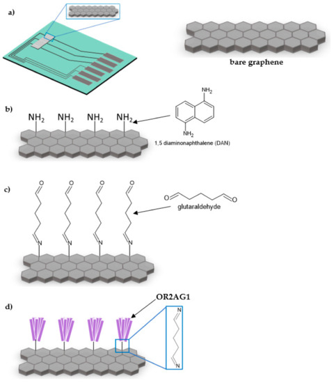 Chicago/Turabian StyleGoodwin, Danielle M., Ffion Walters, Muhammad Munem Ali, Ehsaneh Daghigh Ahmadi, and Owen J. Guy. 2021. "Graphene Bioelectronic Nose for the Detection of Odorants with Human Olfactory Receptor 2AG1" Chemosensors 9, no. 7: 174. https://doi.org/10.3390/chemosensors9070174