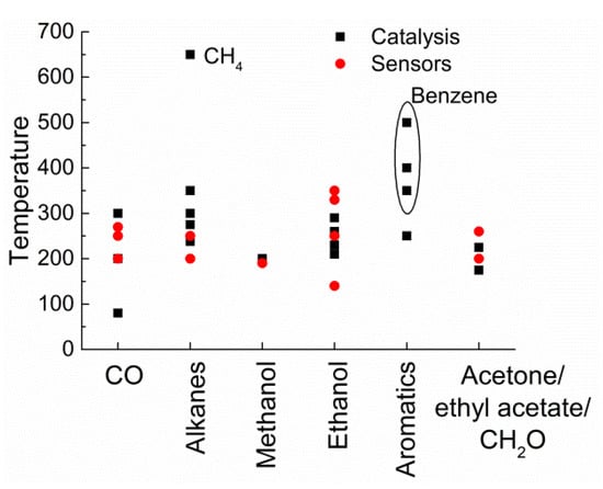 | CO oxidation | CuO | Ethanol, CO, acetone, formaldehyde, benzene, H2S |