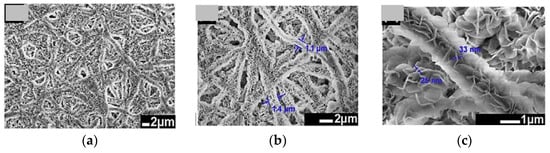 The SEM micrograms: (a–c) HNF of Co3O4. Reprinted with the permission from [52].