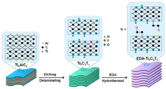 Schematic illustration of the preparation of Ti3C2Tx by EDA (Reproduced with permission from [106]. Copyright 2021, Elsevier).