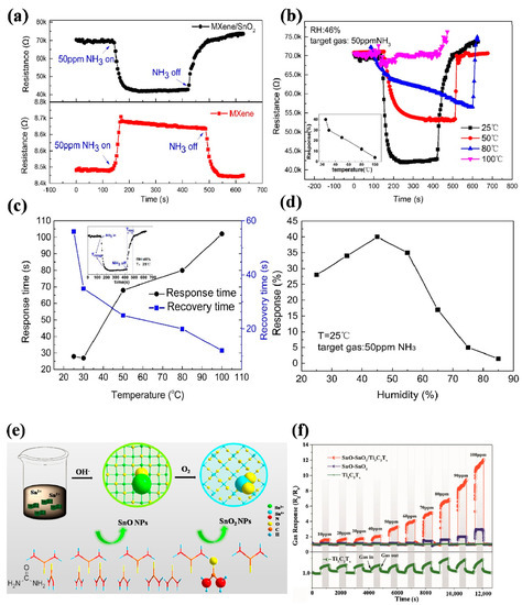 - He, T.; Liu, W.; Lv, T.; Ma, M.; Liu, Z.; Vasiliev, A.; Li, X. MXene/SnO2 heterojunction based chemical gas sensors. Sens. Actuators B Chem. 2021, 329. [Google Scholar] [CrossRef]