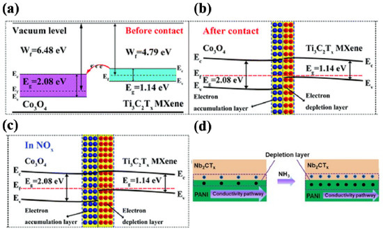 - Choi, J.; Kim, Y.-J.; Cho, S.-Y.; Park, K.; Kang, H.; Kim, S.J.; Jung, H.-T. In situ formation of multiple Schottky Barriers in a Ti(3)C(2)MXene film and its application in highly sensitive gas sensors. Adv. Funct. Mater. 2020, 30, 2003998. [Google Scholar] [CrossRef]