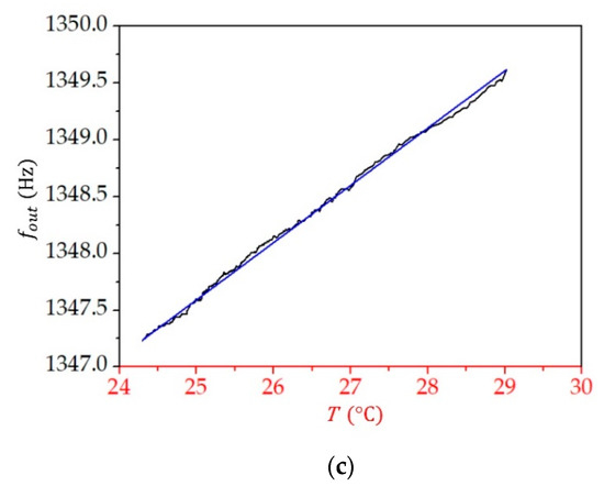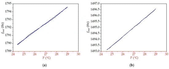 where , , and are coefficients that depend on the cut angle and on mechanical construction of the quartz element [16,17,18,19,20]. For an even better temperature compensation at high-precision measurements of small impedance changes, a switching mode method [15,21] should be used.
