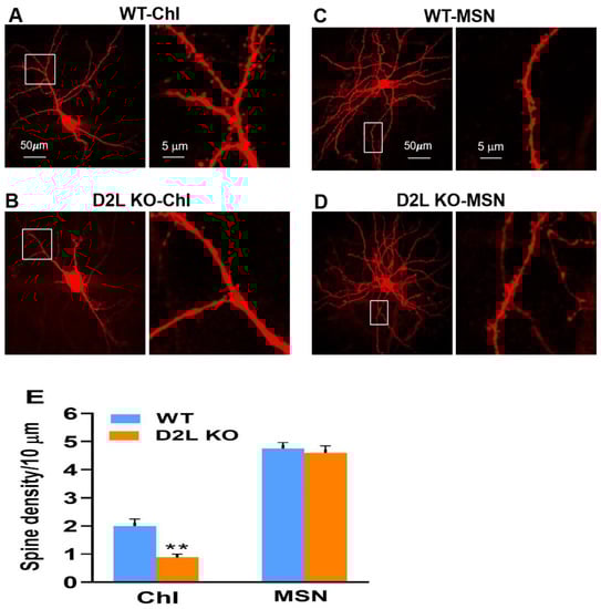 3.3. D2L Deficiency Caused a Reduction in Dendritic Spine Density in Cholinergic Interneurons