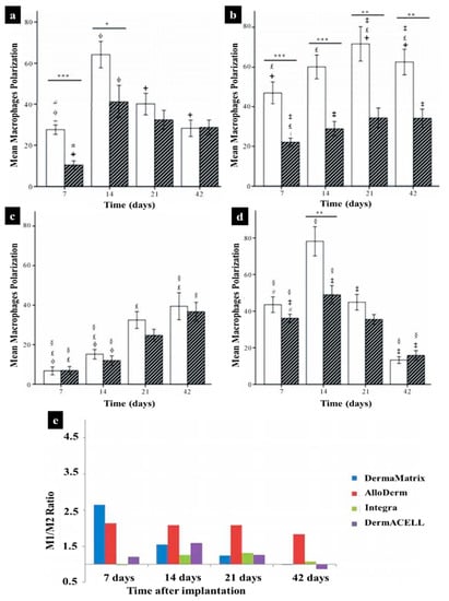 - Agrawal, H.; Tholpady, S.; Capito, A.; Drake, D.; Katz, A. Macrophage phenotypes correspond with remodeling outcomes of various acellular dermal matrices. Open J. Regen. Med. 2012, 1, 25919. Available online: https://www.scirp.org/html/5-2390008_25919.htm (accessed on 10 December 2020). [CrossRef]