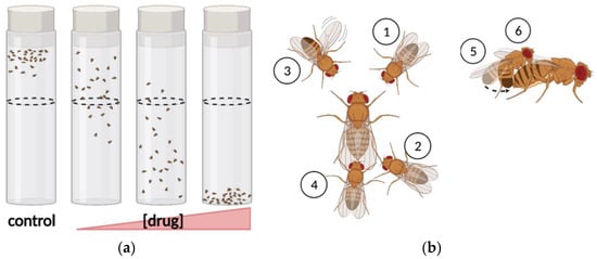 - Cichewicz, K.; Garren, E.J.; Adiele, C.; Aso, Y.; Wang, Z.; Wu, M.; Birman, S.; Rubin, G.M.; Hirsh, J. A New Brain Dopamine-Deficient Drosophila and Its Pharmacological and Genetic Rescue. Genes, Brain Behav. 2017, 16, 394–403. [Google Scholar] [CrossRef]
