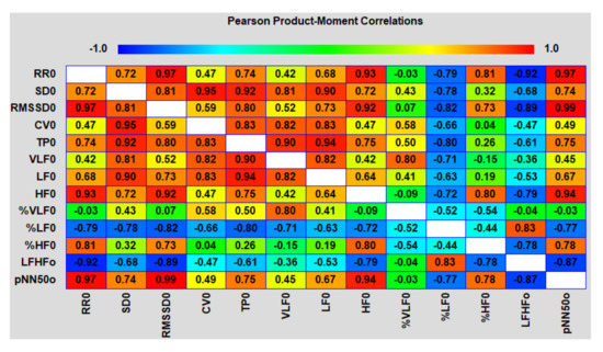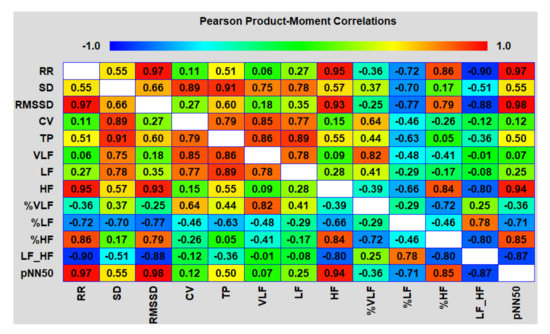 The analysis of the correlation matrices between different HRV indicators in both areas showed an interesting picture (Figure 14 and Figure 15).