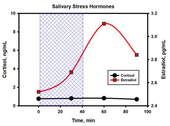 Analysis of the hormones (cortisol and estradiol in saliva and, additionally, adrenaline, noradrenaline, dopamine, serotonin, adrenocorticotropic hormone and somatotropic hormone in the blood) was carried out on the basis of the medical diagnostic center AVC (Moscow) by HPLC-MS. Analysis of cotinine and nicotine in the saliva was determined by gas chromatography and mass-spectroscopy (GC-MS). Statistical processing and graphical presentation of data were performed using Statgraphics version XVII and SigmaPlot version 12.
