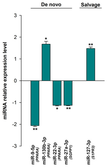 3.3. Expression of the miRNAs Involved in the Regulation of Sphingolipid Metabolism