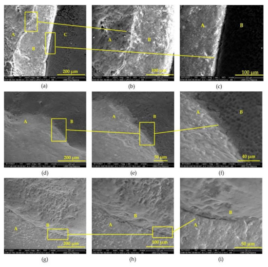 3.2. Appearance of Tooth–Prosthesis Interface after Adhesive Cementation