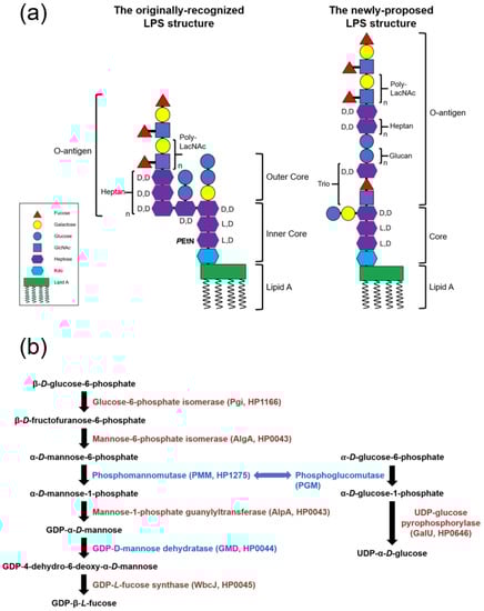 - Li, H.; Liao, T.; Debowski, A.W.; Tang, H.; Nilsson, H.; Stubbs, K.A.; Marshall, B.J.; Benghezal, M. Lipopolysaccharide Structure and Biosynthesis in H elicobacter pylori. Helicobacter 2016, 21, 445–461. [Google Scholar] [CrossRef] [PubMed] [Green Version]