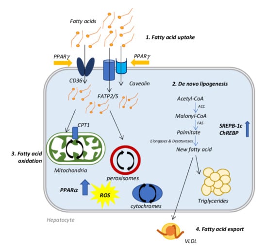 | Tetracyclines | antibiotic | Inhibition of FAO (PPARα, CPT1), inhibition of lipid export, Upregulation of fatty acid transport, Upregulation of CYP2E1 and ROS production |
