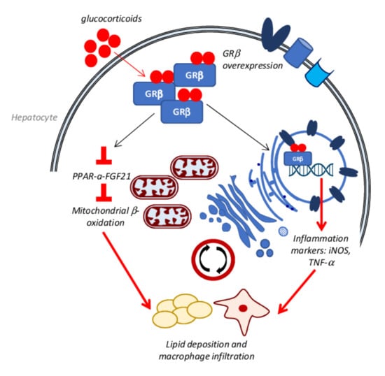 - Marino, J.S.; Stechschulte, L.A.; Stec, D.E.; Nestor-Kalinoski, A.; Coleman, S.; Hinds, T.D., Jr. Glucocorticoid Receptor β Induces Hepatic Steatosis by Augmenting Inflammation and Inhibition of the Peroxisome Proliferator-activated Receptor (PPAR) α. J. Biol. Chem. 2016, 291, 25776. [Google Scholar] [CrossRef] [PubMed] [Green Version]